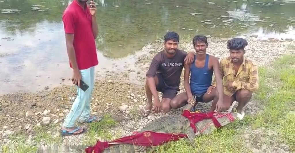 कंठाल नदी में विशालकाय मगरमच्छ देख सहमें मछुआरे, ग्रामीणों की मदद से पकड़ा मगरमच्छ, रेस्क्यू करने नहीं पंहुची वन विभाग की टीम